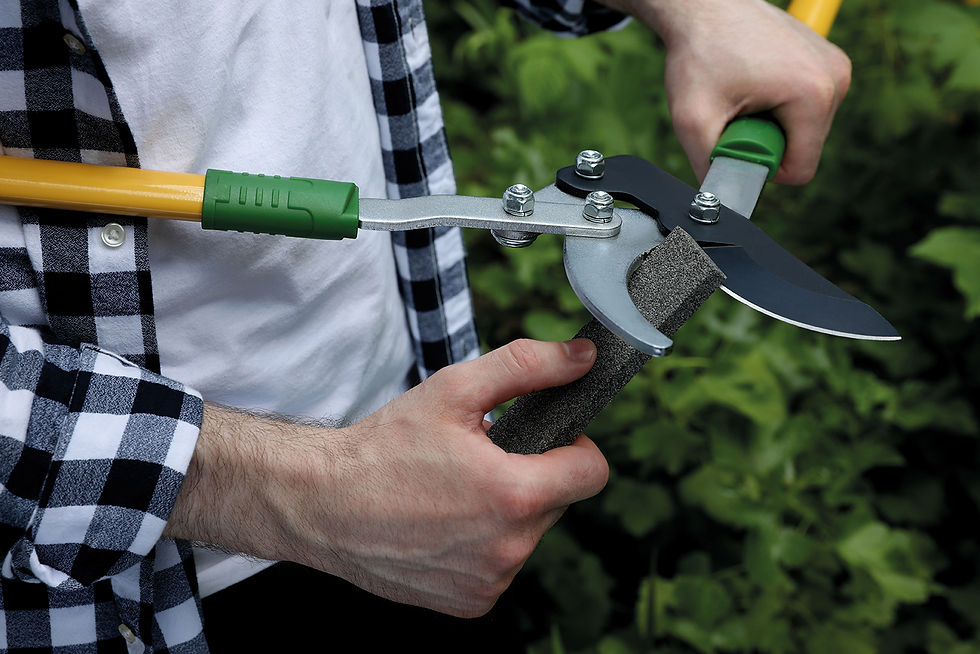 After sharpening, apply a little mineral oil or wax to the cut surfaces. Mangling with blunt secateurs is a hopeless, miserable activity – for you, and your plants. The humble-looking, yet indispensable sharpening stone will revolutionise your gardening world.