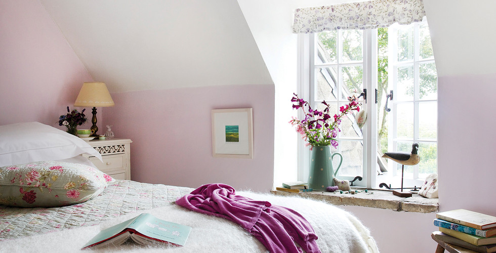 Pretty country-style fabrics in gentle shades of pink and aqua soften the rooms, while the kitchen features cheerful pops of red against a classic cream backdrop. An Aga, bought with money left by an aunt, provides warmth throughout the home, replacing the clunky night storage heaters that once served as the only source of heat.